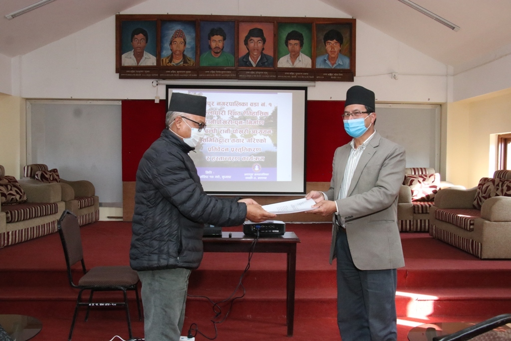 भक्तपुरको रानीपोखरी पुनर्निर्माणसम्बन्धी प्रतिवेदन हस्तान्तरण