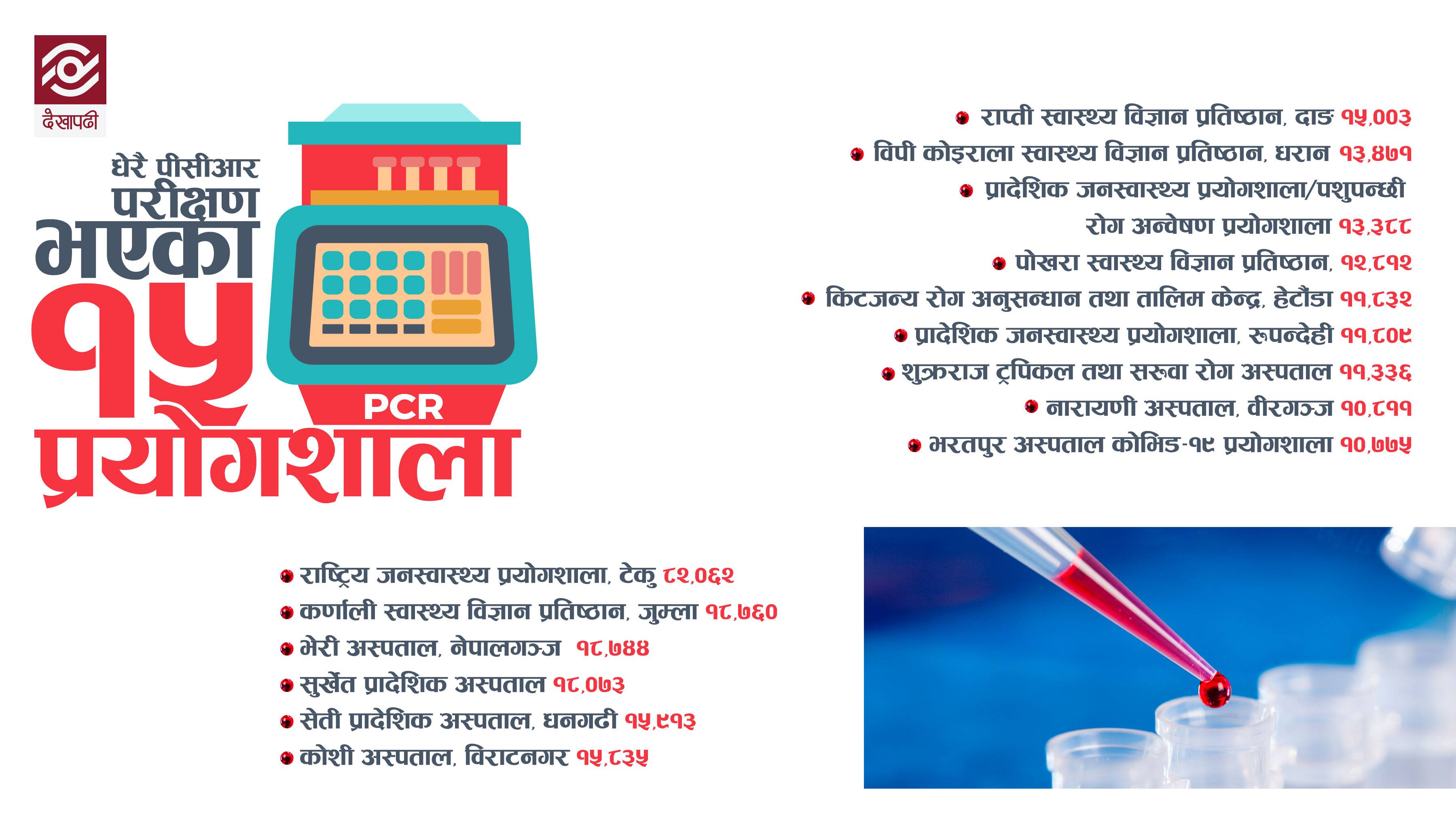 नेपालमा पीसीआर टेस्ट: २८ प्रयोगशालामा तीन लाख पैंतिस हजारभन्दा बढी परीक्षण, सबैभन्दा धेरै परीक्षण टेकुमा