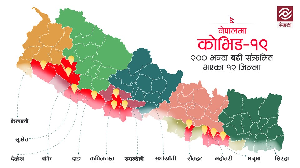 कोभिड-१९ अपडेट : यी १२ जिल्लामा छन् २०० भन्दा धेरै संक्रमित