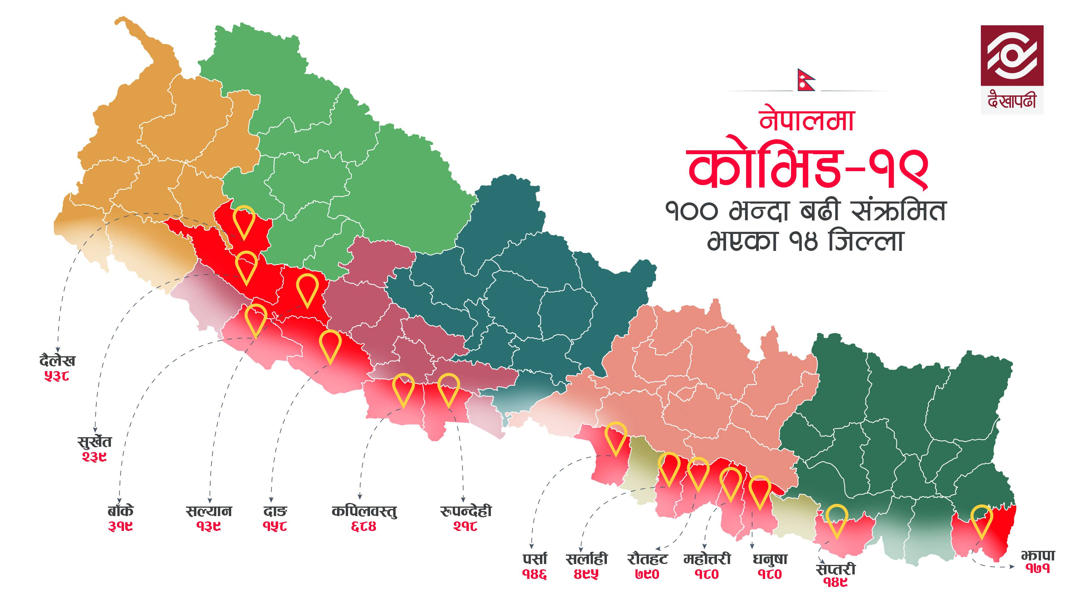 कोभिड- १९ अपडेट : यी १४ जिल्लामा छन् १०० भन्दा बढी संक्रमित