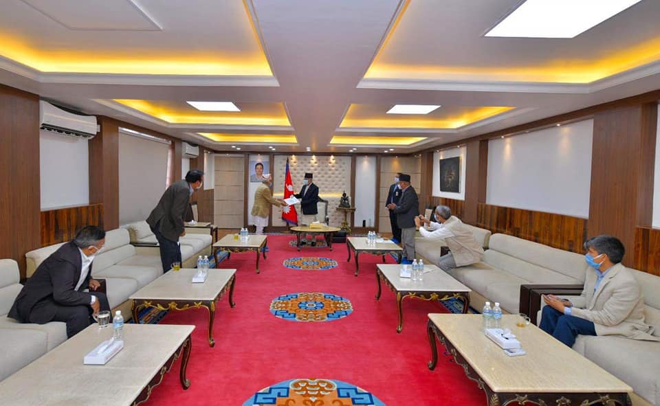 प्रधानमन्त्रीलाई ज्ञापन पत्र बुझाउँदै कांग्रेस