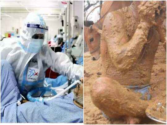कोरोना भगाउन शरीरमा गोबर र गौमुत्र लेपन!
