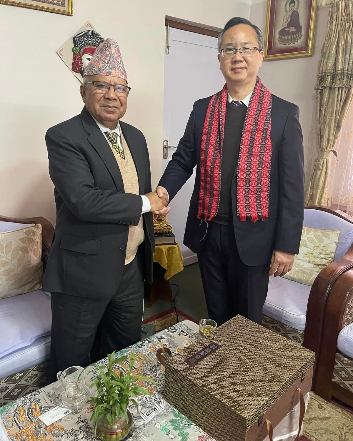 चिनियाँ राजदूतले एकैदिन भेटे नेकपा एसका अध्यक्ष नेपाल र प्रधानमन्त्री दाहाललाई