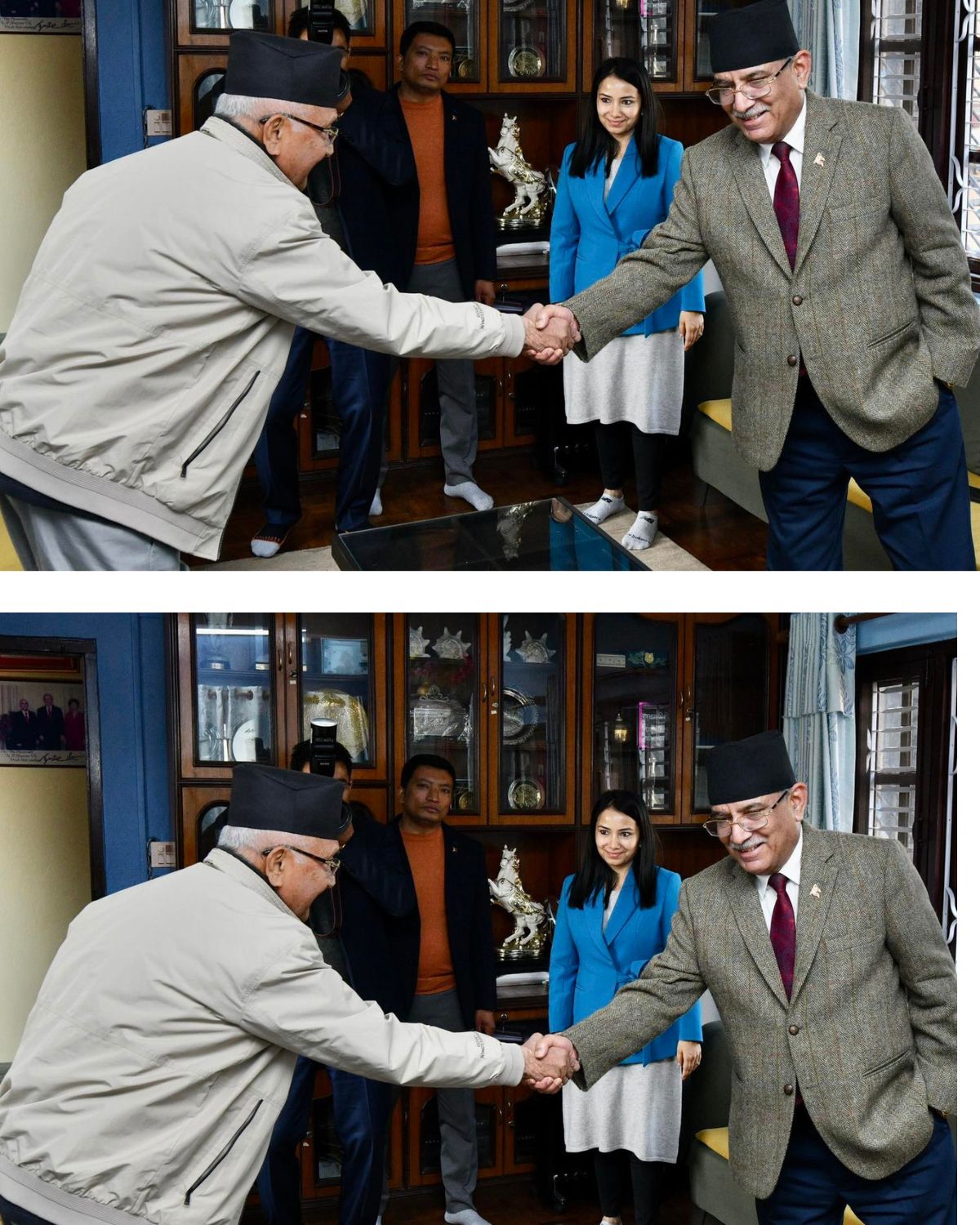 एमाले अध्यक्ष ओलीलाई भेट्न प्रधानमन्त्री दाहाल पुगे बालकोट