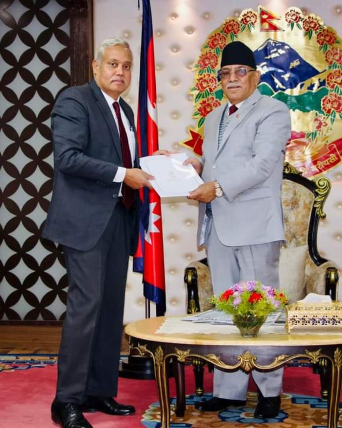 भारतीय राजदूत श्रीवास्तवले गरे प्रधानमन्त्री प्रचण्डसँग शिष्टाचार भेट, बुझाए भारतीय प्रधानमन्त्री मोदीले पठाएको सन्देश
