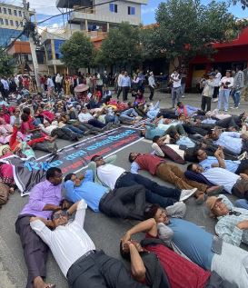 सडकमै सुतेर आन्दोलनमा उत्रिए शिक्षक