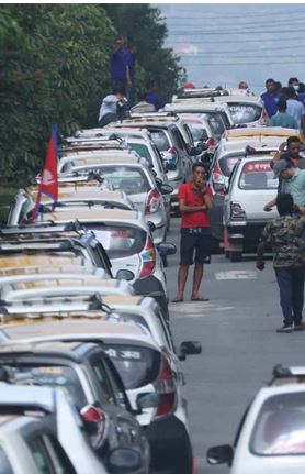 बाटोमा ट्याक्सी रोकेर नयाँबानेश्वर ट्याक्सी चालकहरुको प्रदर्शन