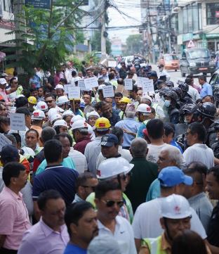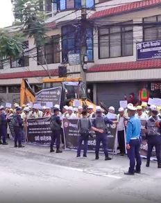 बालुवाटारमा निर्माण व्यवसायीले गरे विरोध प्रदर्शन