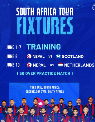 नेपालले दक्षिण अफ्रिकामा स्कटल्याण्ड र नेदरल्याण्ड्ससँग अभ्यास खेल खेल्ने