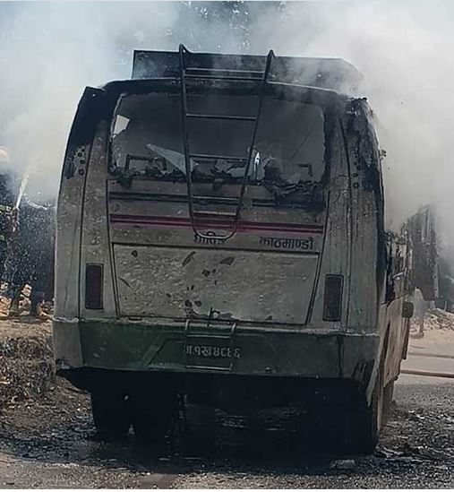धादिङमा गुडिरहेको बसमा आगलागी, यात्रु सकुशल