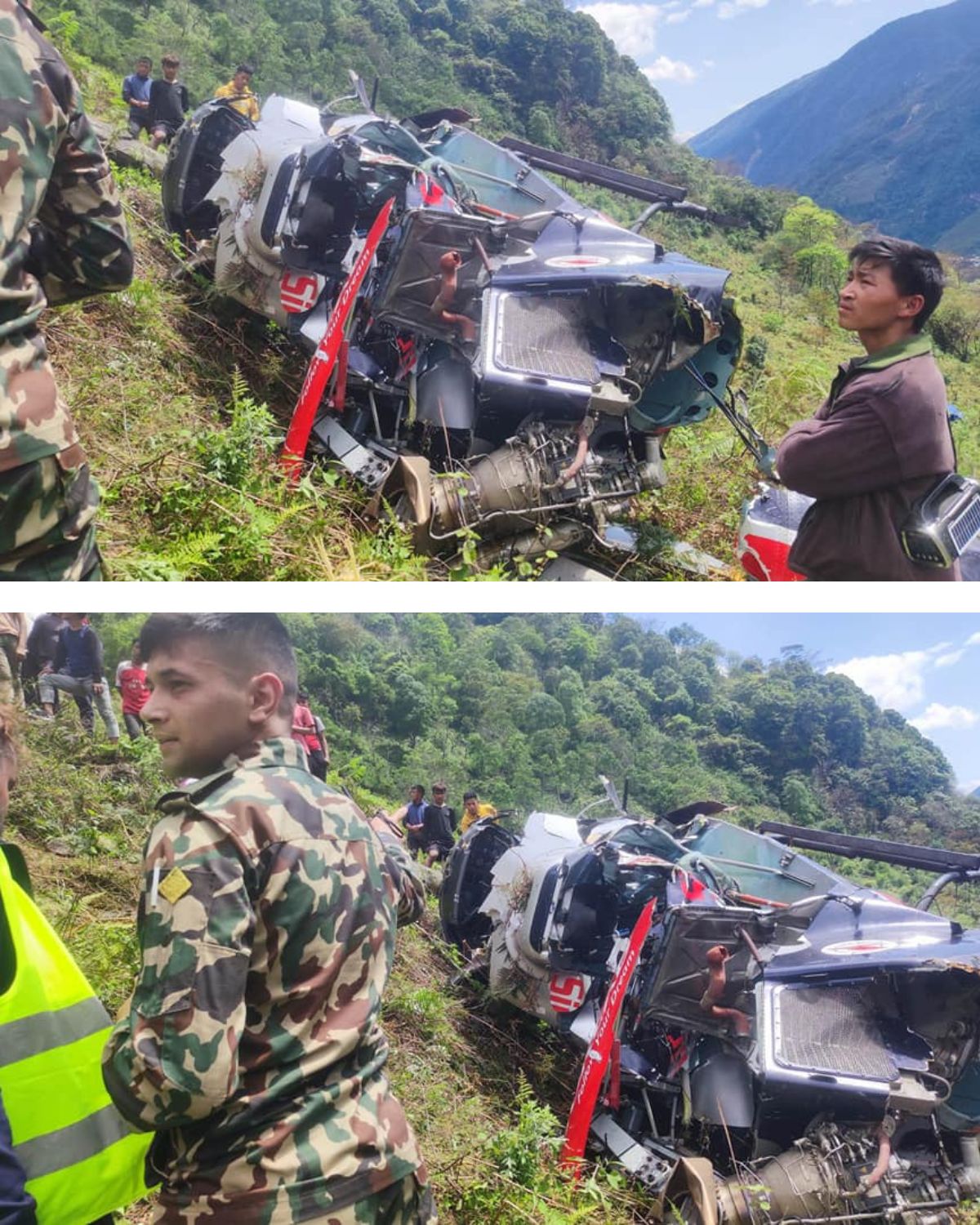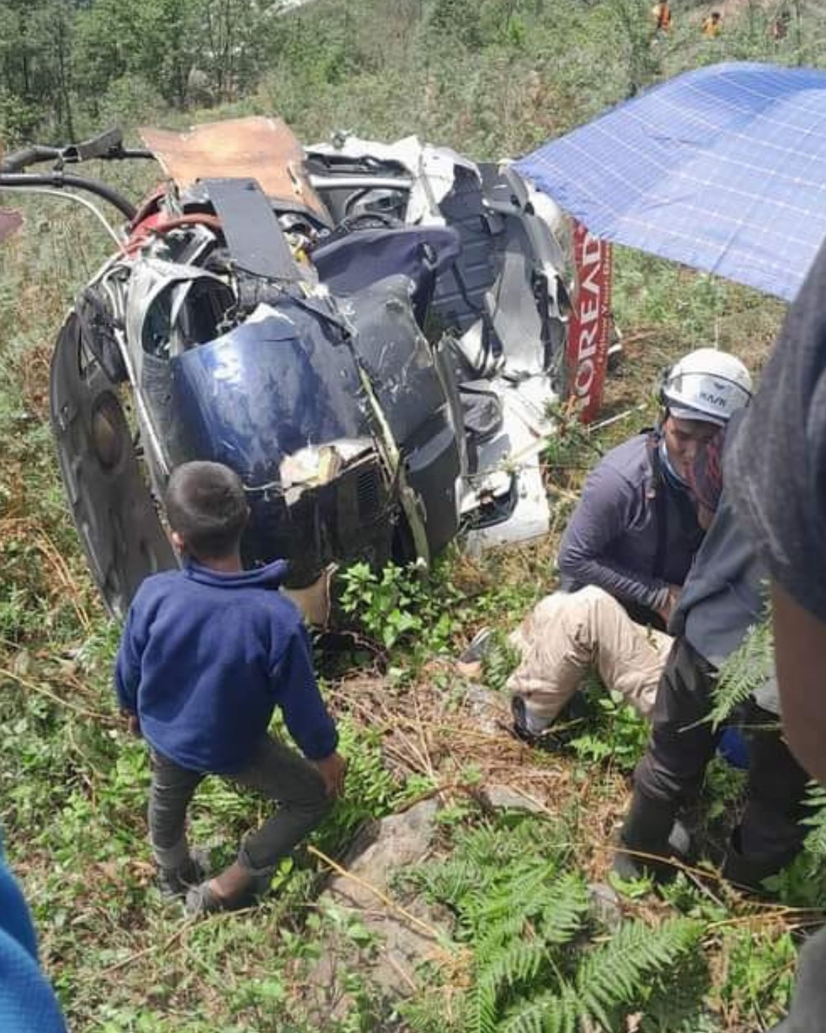 संखुवासभाको भोटखोलामा हेलिकप्टर दुर्घटनाः दुई जनाको अवस्था गम्भीर