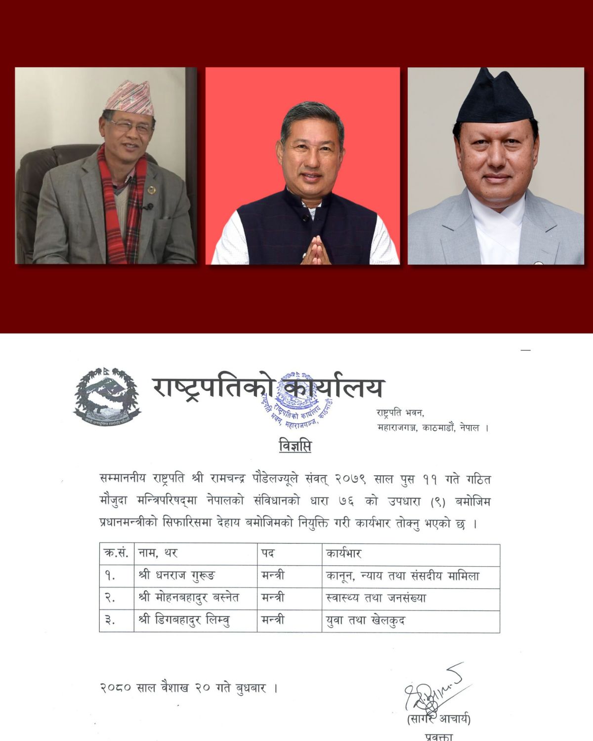 बुधवार नियुक्त तीन मन्त्रीको शपथ आज हुँदै