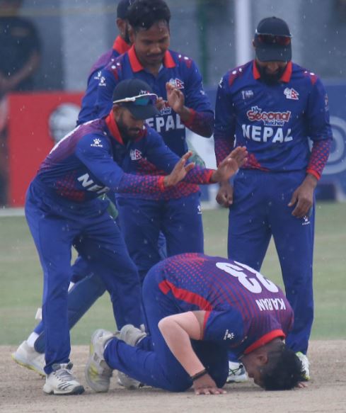 ३७ रन बनाउँदा कुवेतले ६ विकेट गुमायो, करण केसी एक्लैले लिए ५ विकेट