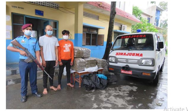 धरानमा निषेधाज्ञाको बेला एम्बुलेन्समा भेटियो १०० केजी गाँजा