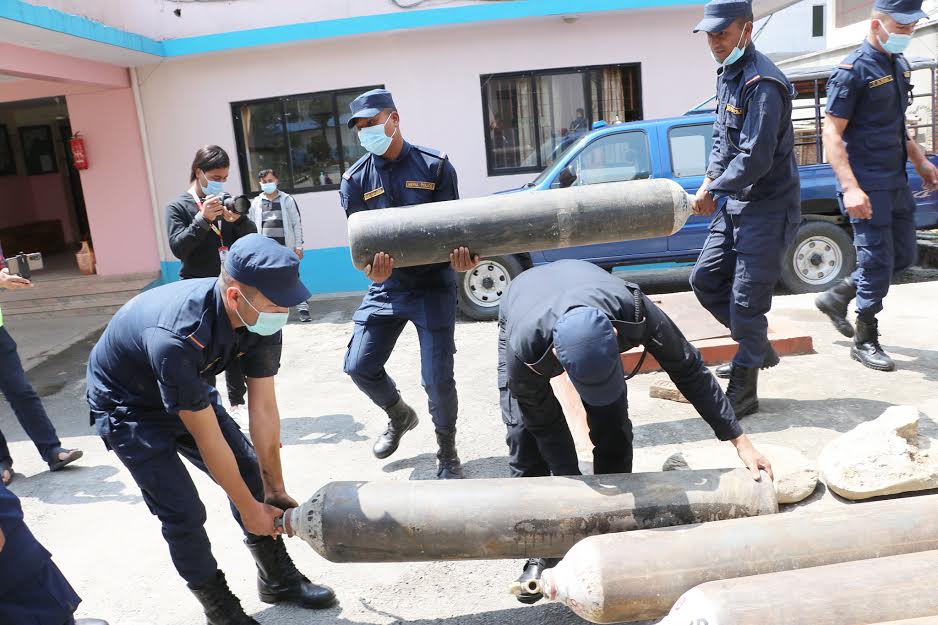 प्रहरीको सक्रियतामा ५ हजार ४३२ थान अक्सिजन सिलिन्डर संकलन