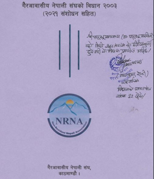 एनआरएनएको विधान परराष्ट्रद्वारा प्रमाणीकरण