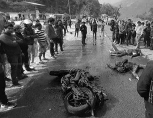 ट्रकसँग मोटरसाइकल ठोक्किँदा आगो लाग्यो, दुईजनाको मृत्यु