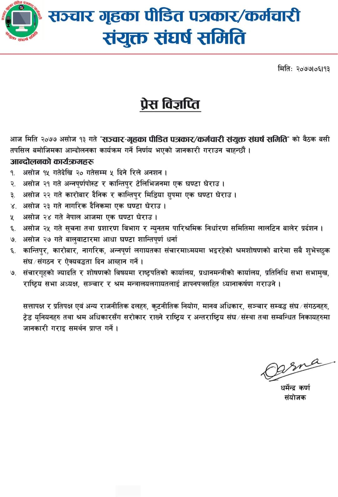 महामारीको बहानामा पीडित बनाइएका पत्रकार तथा कर्मचारीले घाेषणा गरे आन्दोलन
