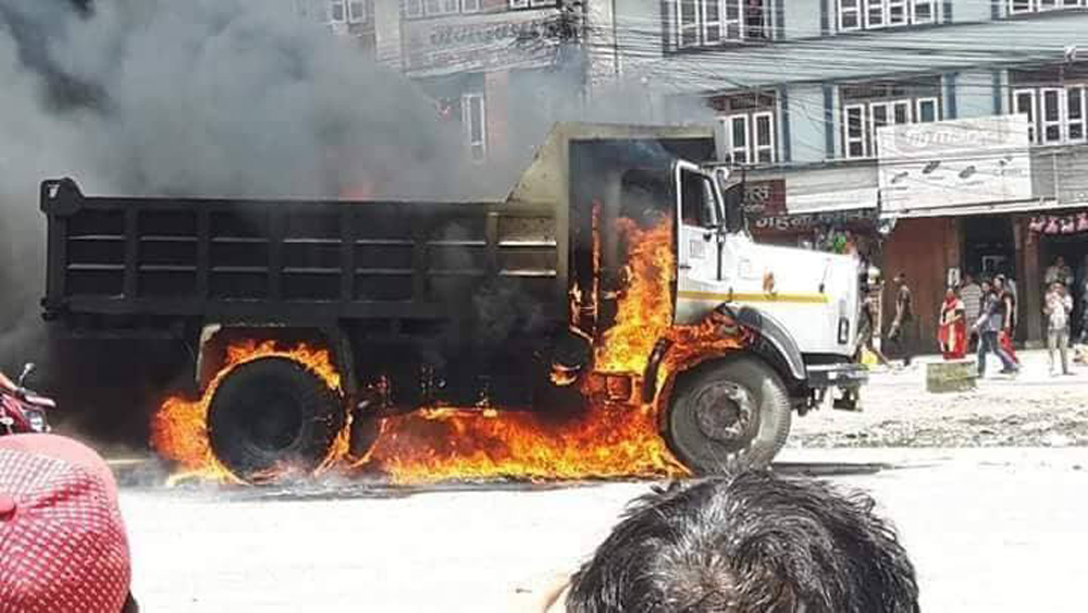 सडकमै जल्यो टिपर
