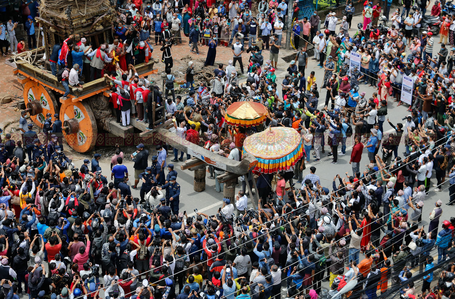 मच्छिन्द्रनाथको रथ यात्रा रोकेपछि प्रहरीविरुद्ध स्थानीयले घरेलु हतियार चलाए (तस्वीरहरु)