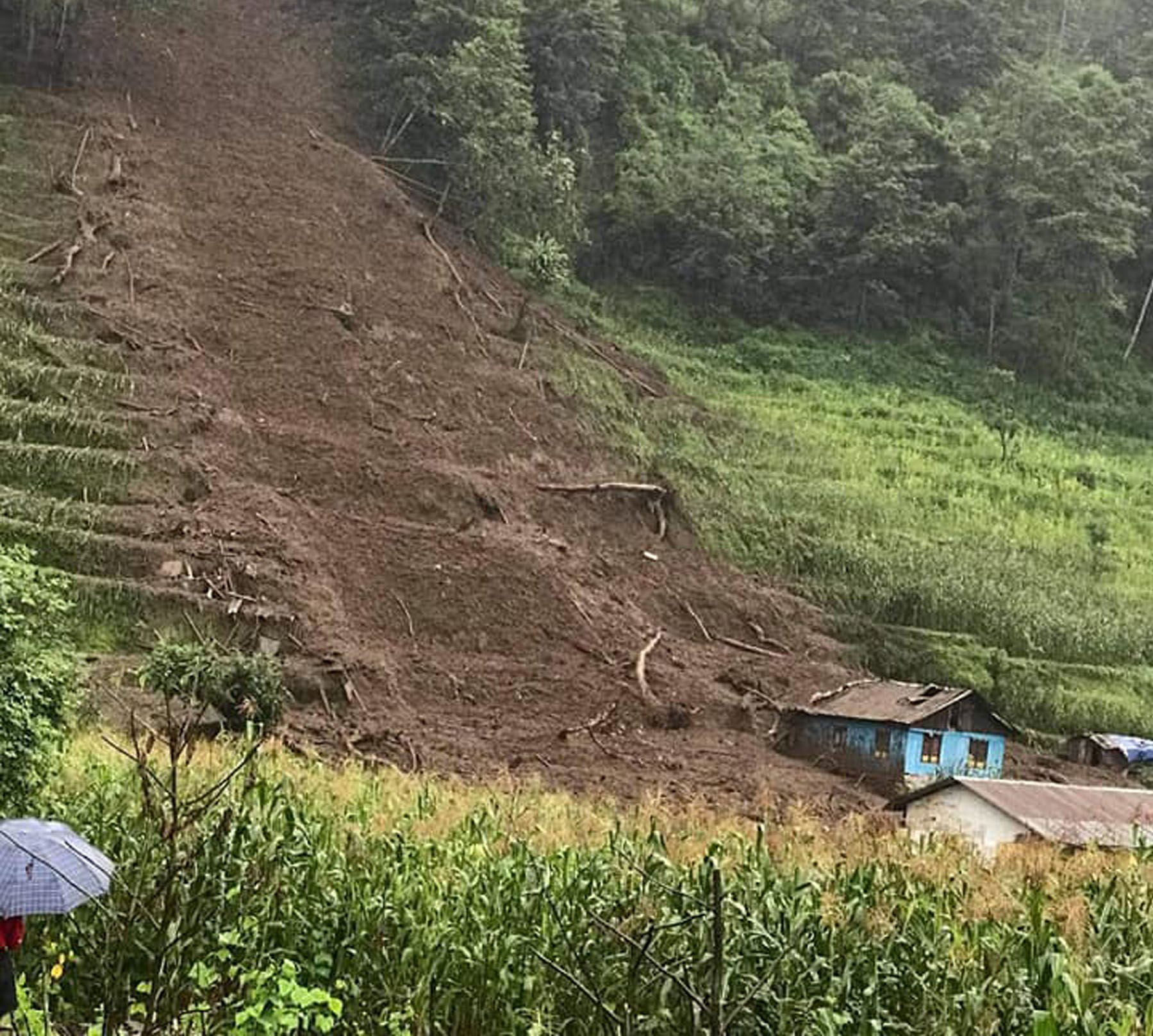 पहिरोले सल्यानमा ३ घर विस्थापित, ३० घरपरिवार उच्च जोखिममा