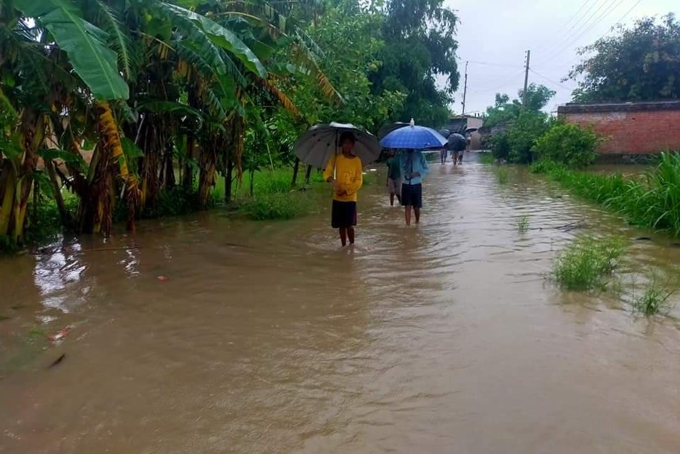 वर्षाका कारण धनगढीका अधिकांश बस्ती डुबानमा