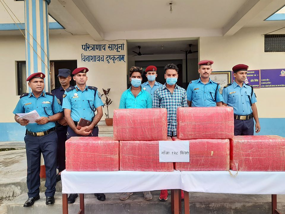 ट्यांकरमा लुकाएर ल्याउँदै गरेको १२८ केजी गाँजासहित दुईजना पक्राउ
