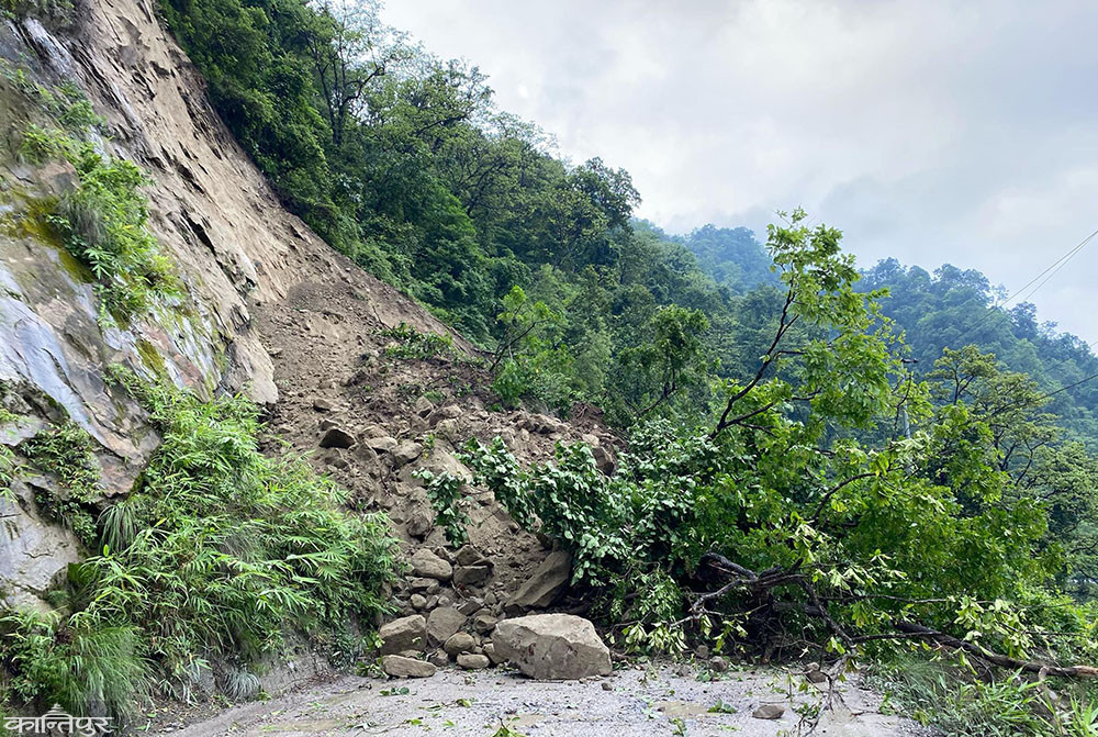 पहिरोको कारण राप्ती र सिद्धार्थ राजमार्ग अवरुद्ध