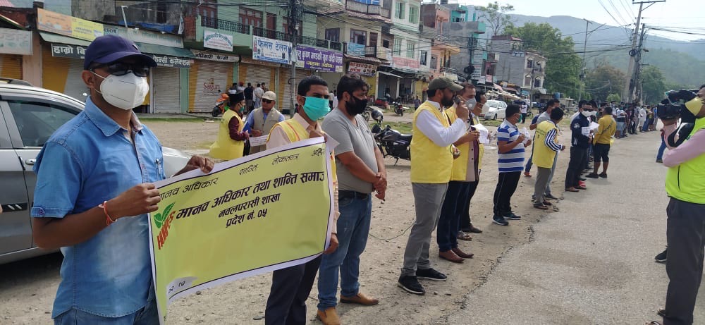 शान्ति समाजद्वारा सुस्ता पश्चिममा प्रदर्शन, विराटनगरमा खाद्यान्न सहयोग
