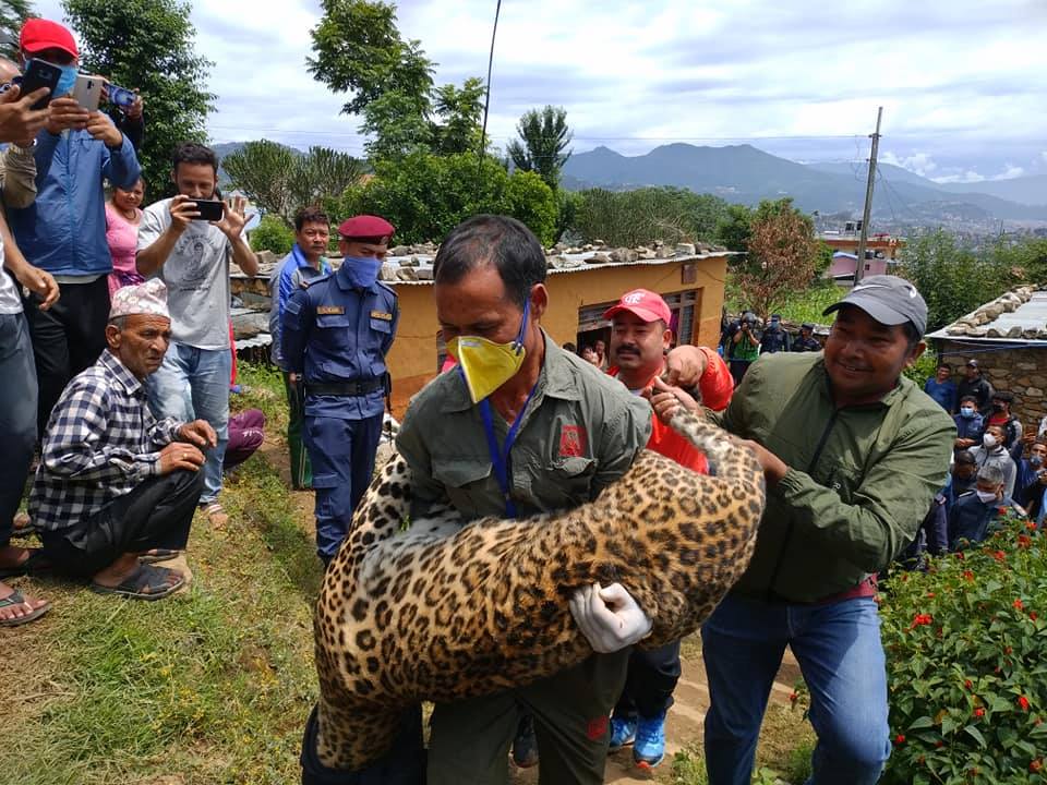 कीर्तिपुरमा स्थानीयले थापेकाे पासाेमा परेकाे चितुवाकाे उद्धार