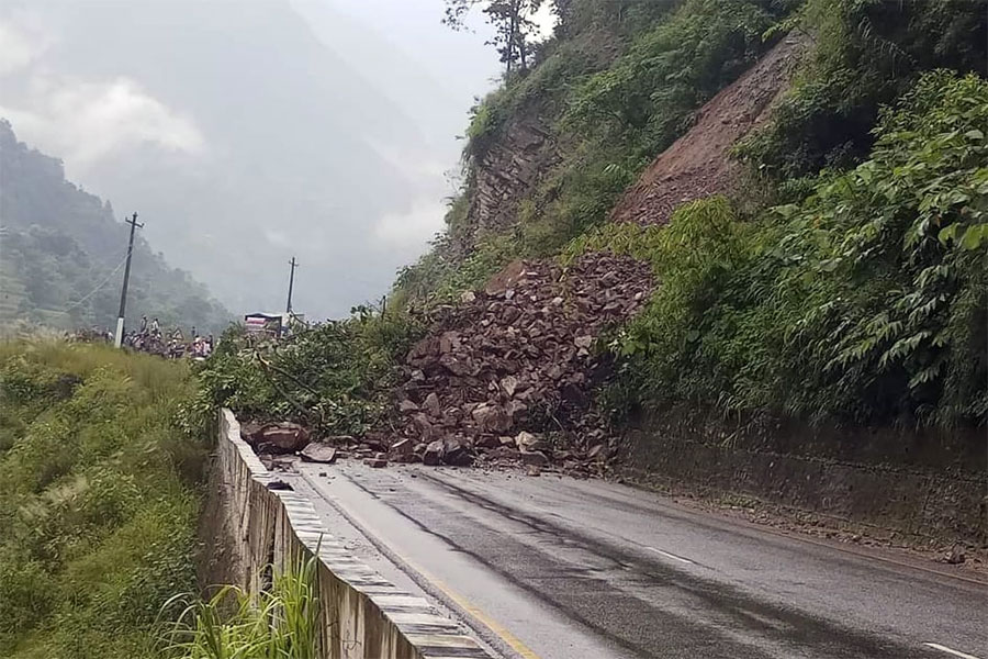 पहिरोका कारण सिद्धार्थ राजमार्ग अवरुद्ध