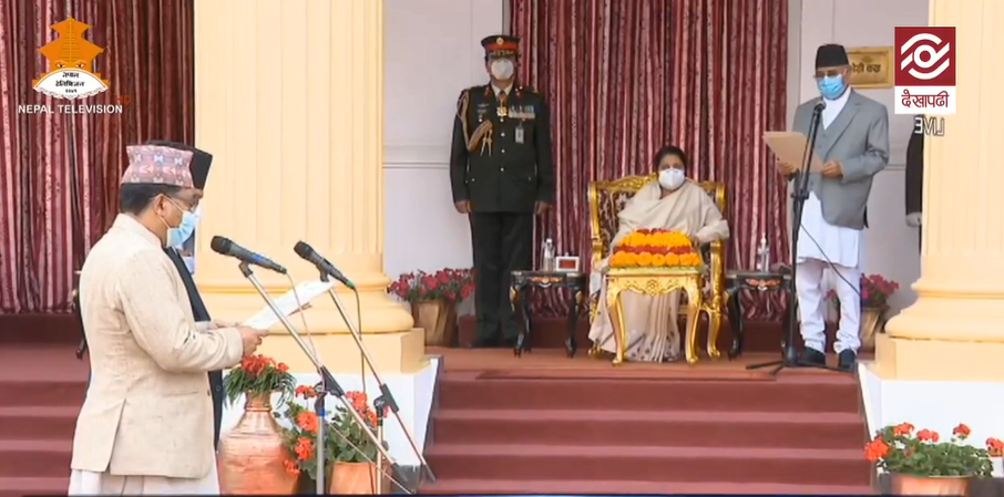 प्रधानमन्त्री ओलीले दिए पुरानै मन्त्रीमण्डललाई निरन्तरता, मन्त्रीहरुको सपथ हुँदै