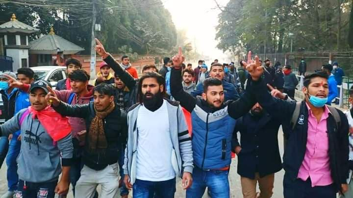 प्रधानमन्त्री ओलीको पक्षमा अनेरास्ववियको आरआरको प्रदर्शन