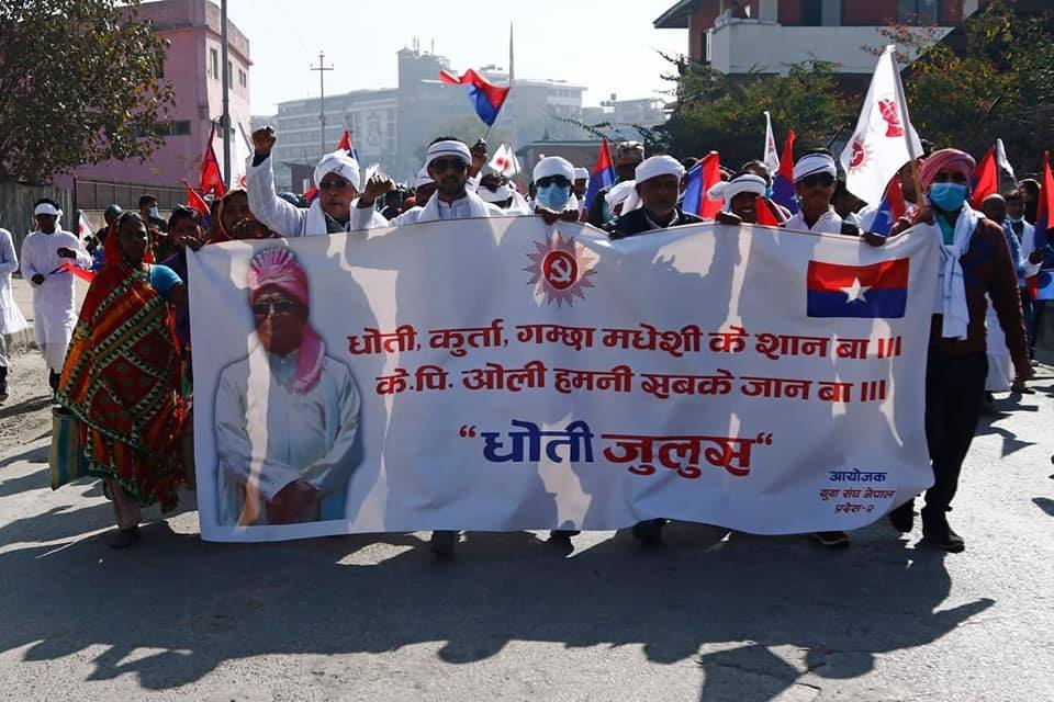 प्रधानमन्त्रीको पक्षमा काठमाडौंमा धोती जुलुस