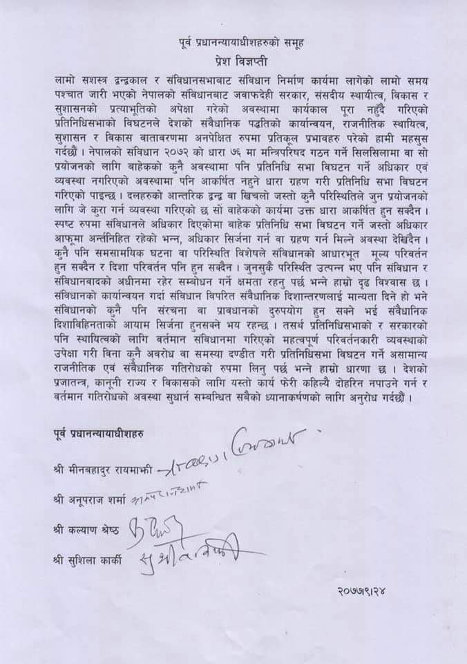 संविधानमा आकर्षित नहुने धारा ग्रहण गरी प्रतिनिधिसभा विघटन गरियो : पूर्वन्यायाधीश