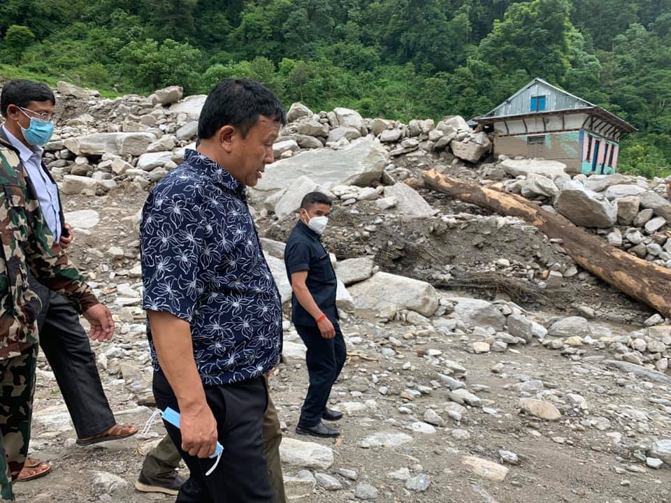 बाढीपहिरो प्रभावित क्षेत्रमा पुगे मन्त्री गुरुङ