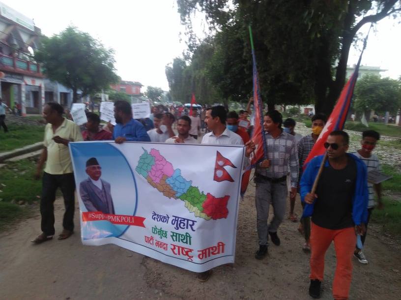 प्रधानमन्त्रीको पक्षमा टीकापुरमा प्रदर्शन