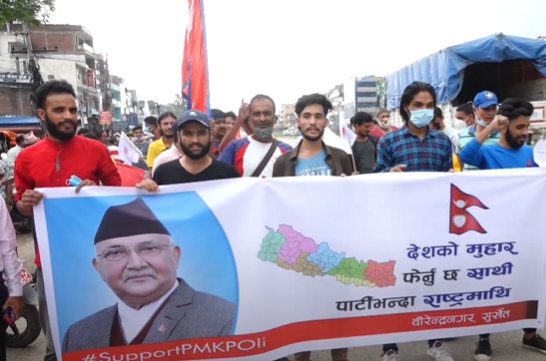 प्रधानमन्त्री ओलीको समर्थनमा सुर्खेतमा सडक प्रदर्शन