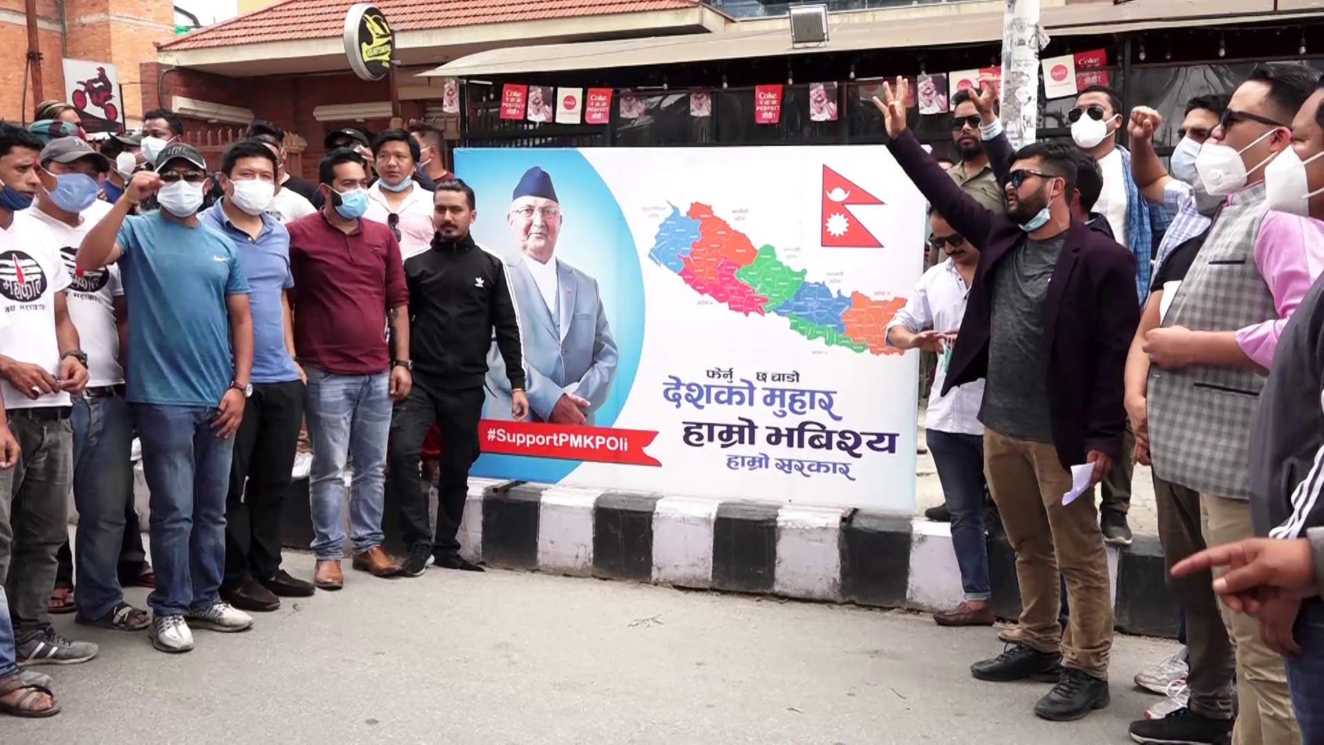 सरकार ढाल्न पाइँदैन भन्दै माइतीघर मण्डलामा प्रदर्शन