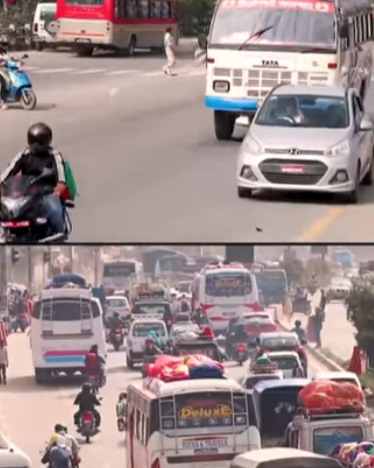 दसैँमा काठमाडाैंकाे सडकहरूमा चहलपहल कम