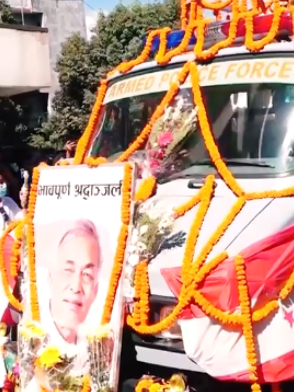 मेडिसिटी अस्पताल प्राङ्गणमा प्रदीप गिरिको पार्थिव शरीरमा श्रद्धाञ्जली अर्पण गर्दै