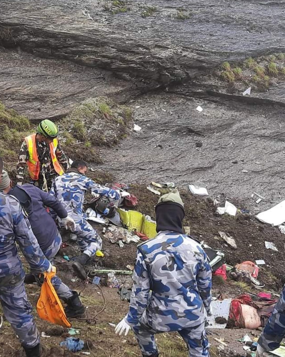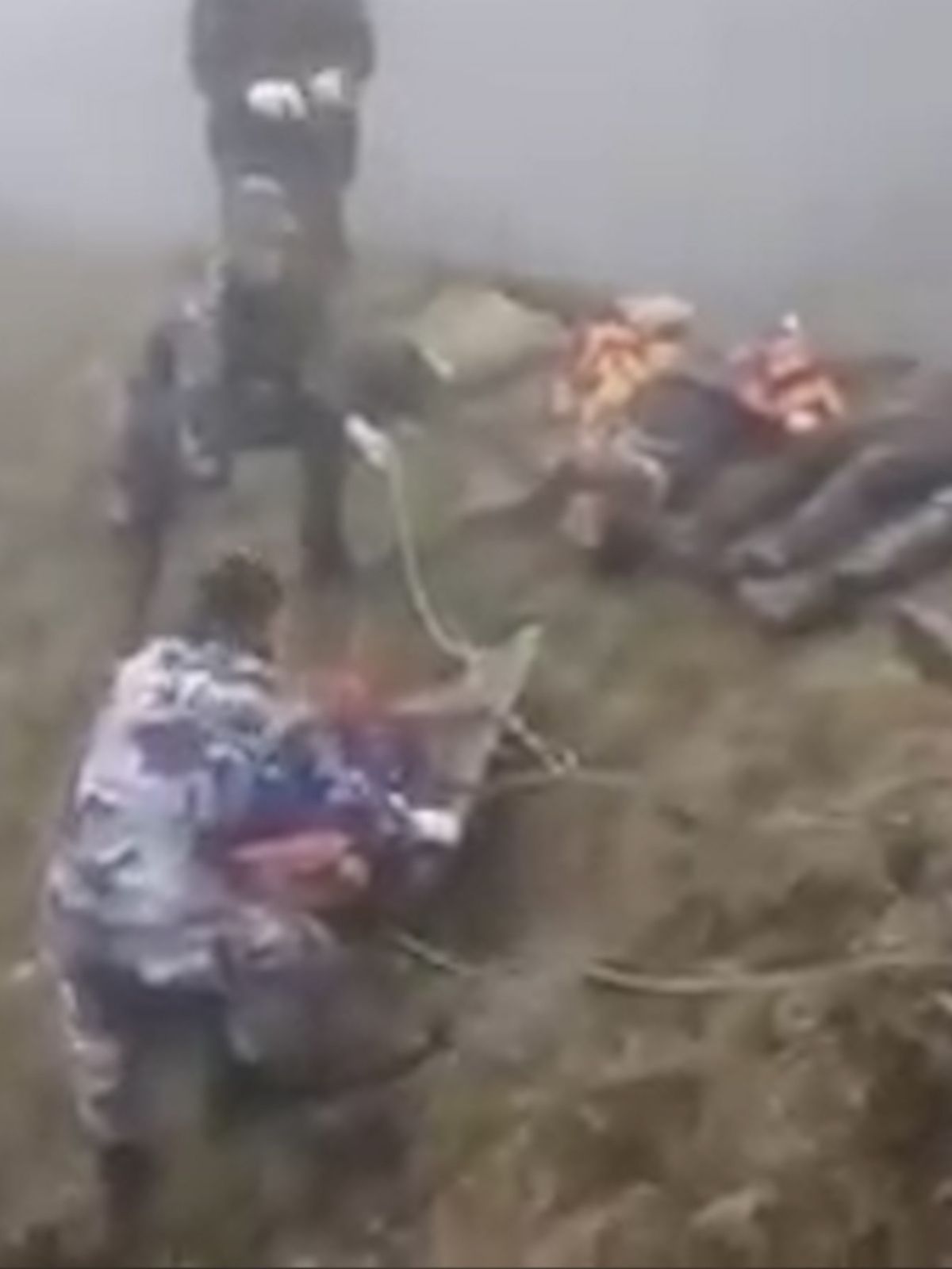 तारा एयरको जहाज दुर्घटनास्थलबाट शव संकलन गर्दै सुरक्षाकर्मी र स्थानीय