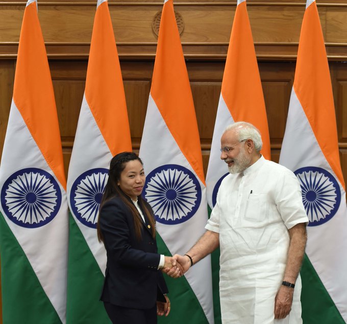 ओलम्पिक पदक विजेता मिराबाई चानूलाई प्रधानमन्त्री मोदीले दिए बधाई