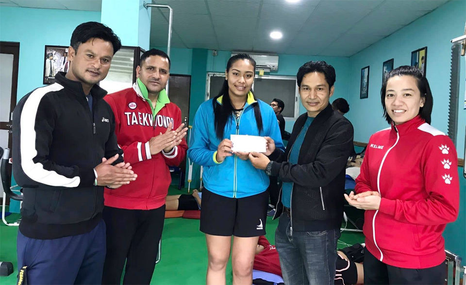 भलिबल खेलाडी मालीलाई खेलाडी संघकाे दुई लाख सहयोग