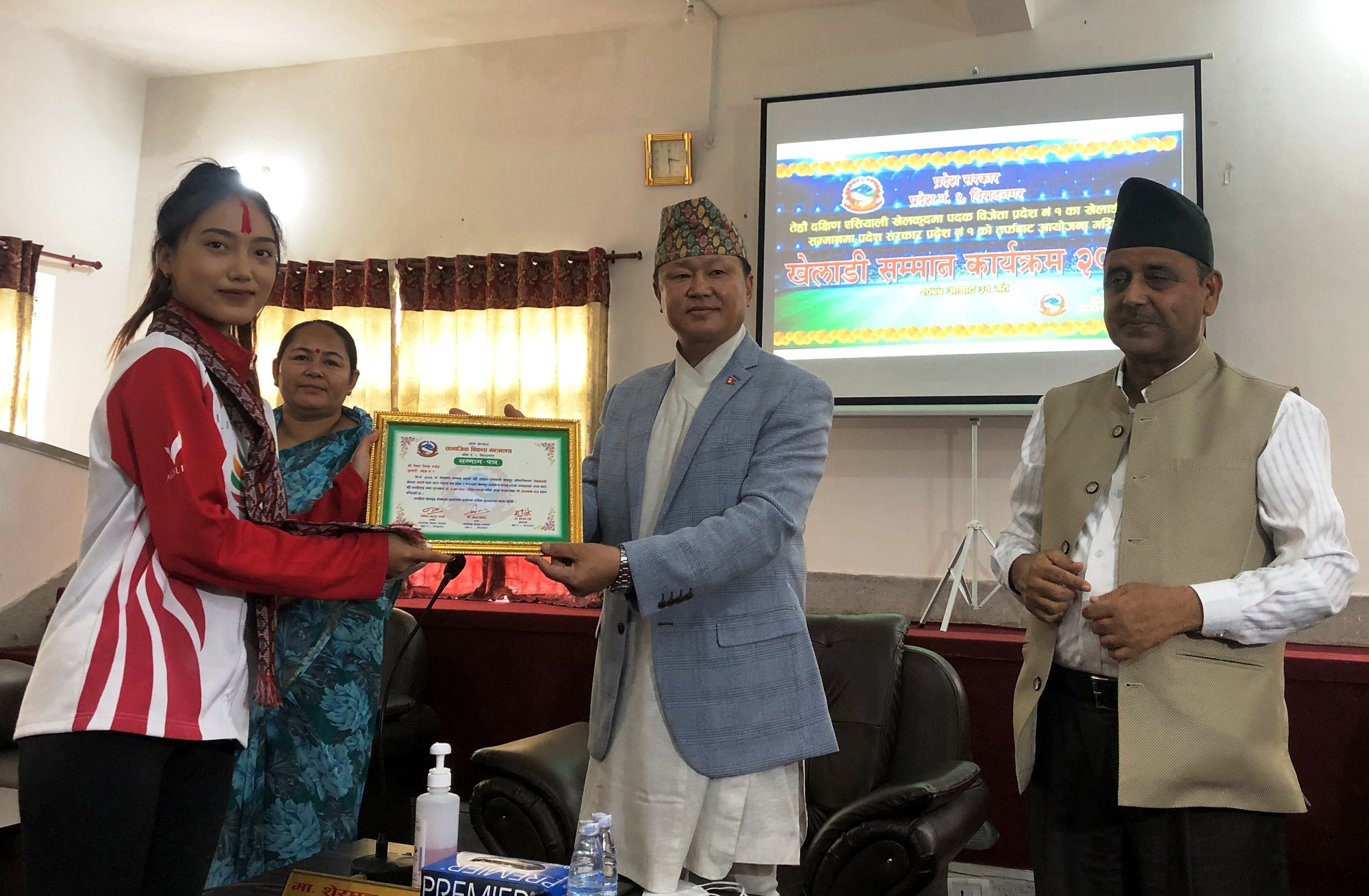 सागका पदक विजेतालाई प्रदेश १ सरकारको सम्मान
