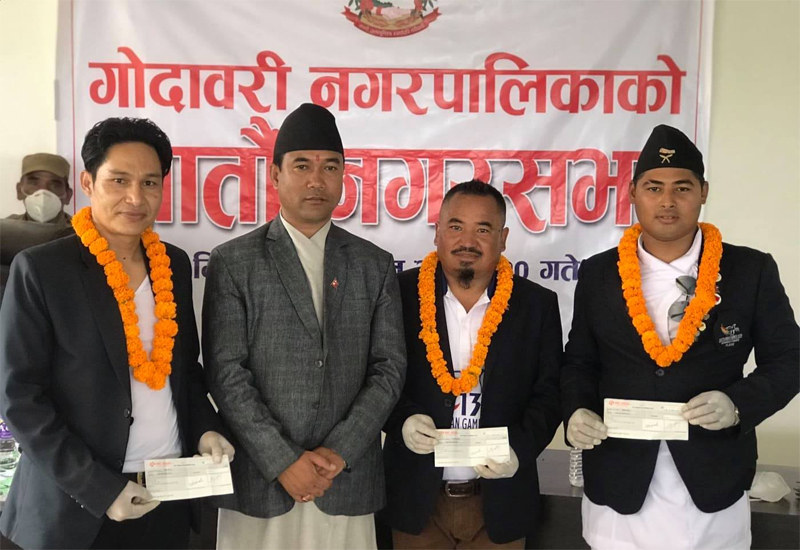 सागका पदक विजेतालाई गोदावरी नगरपालिकाकाे सम्मान